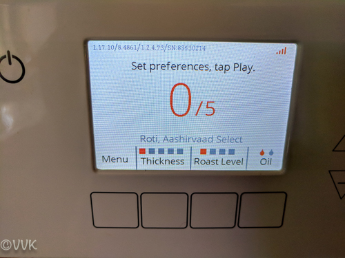 - Now start the rotimatic and select the roti option and the flour. I used Aashirvaad Select.