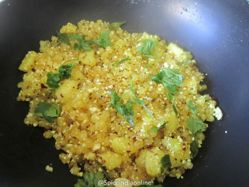 - Add in chopped boiled potatoes. Fry for few seconds until it coats little oil over and gets firm.