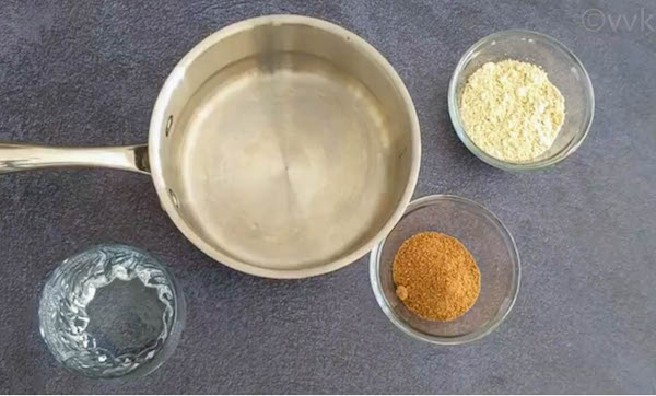 - In a saucepan, add the sattu mix, coconut sugar(any other sweeteners to your choice), and water.
