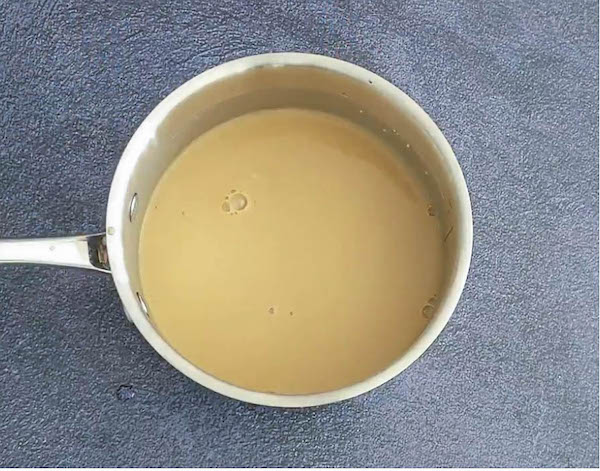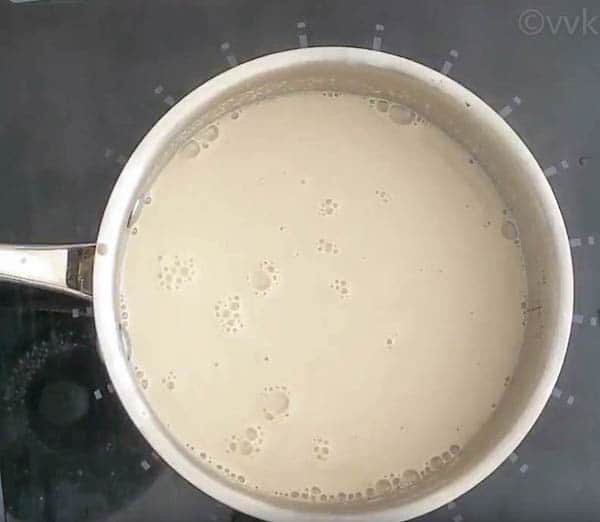 - When you see bubbles on top as shown in the picture, add the milk and mix.
