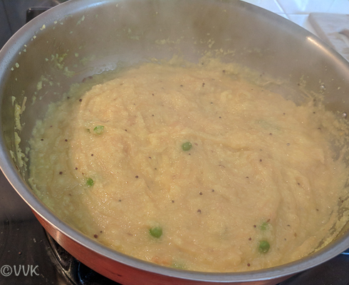 - Reduce the heat to low and it the rava and semiya cook.