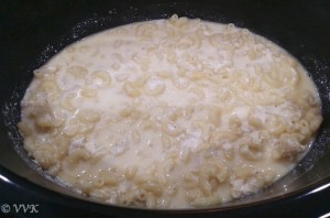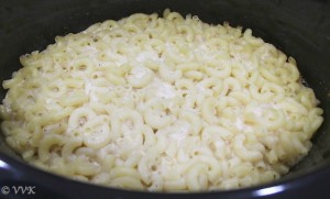 For this week’s blogging marathon theme I need to pick three from this list of Top 10 comfort food recipes. When I went over the list, I selected this Mac and Cheese recipe right away. Yes, the word slow cooker did catch my attention and here I am with the recipe. I had to skip couple of ingredients and alter couple others – the main one to skip is the cheddar cheese soup but substituted with more milk and cheddar cheese. Also I went with black pepper instead of white and used the cheese that I had in hand. (I used white cheddar and Mexican blend) The interesting ingredient in this recipe is the sour cream. The sour cream flavor along with onion powder tastes great. Even though the recipe doesn’t call for bread crumbs, I added them as Vaandu enjoys them in the pasta.