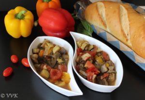 - 7 cups mixed veggies cut into chunks (I used yellow zucchini, green zucchini, broccoli, colored bell peppers, eggplant)