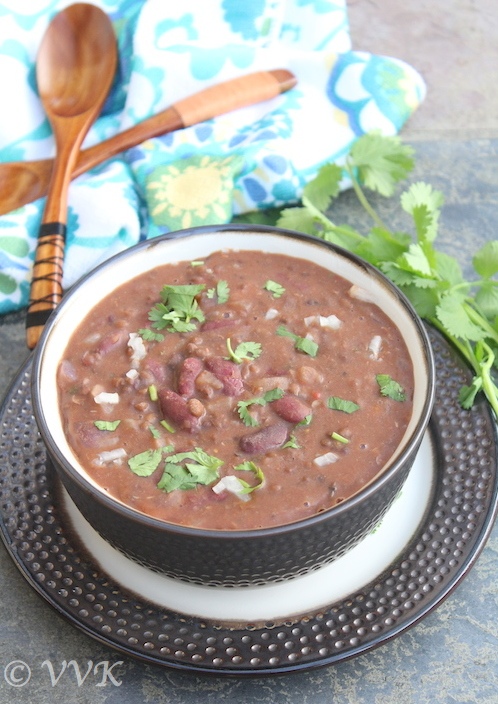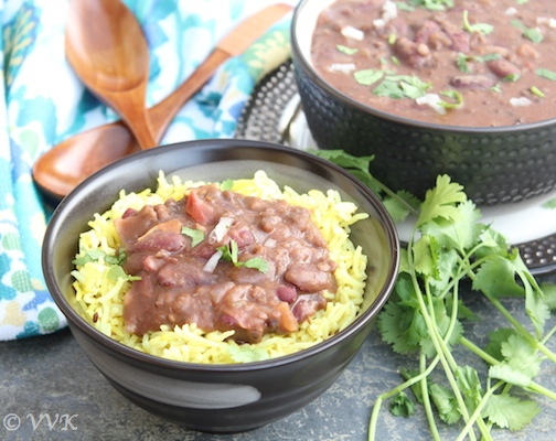 Yes, you read the title right. Today I am sharing the vegan version of Dal Makhani. The word Makhani means butter and the traditional version calls for both butter and cream. I am presenting the vegan version sans butter and cream, but I can guarantee the rich and creamy taste, thanks to the slow cooking concept and of course my slow cooker. Earlier this Monday, I posted the Vegan Turmeric and Saffron rice that I prepared in my rice cooker. Today I am presenting the gravy that I served along with the rice that I prepared with the slow cooker.
