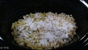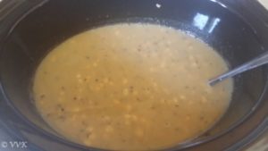 I have seen chowder, especially clam chowder served in sour dough bread bowl. Bread bowl is a recipe on its own which I wanted to try sometime soon. So today I am just simply serving this potato corn chowder in a typical soup bowl instead of bread bowl. I slow cooked this soup in low mode for about 6 hours. But you can cook the same in high mode for about 2.5 hours.