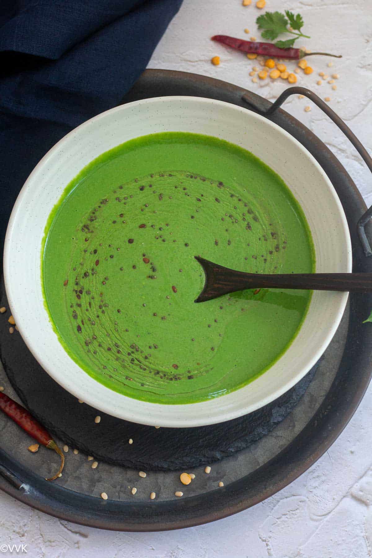 Cilantro and curry leaves: While curry leaves and cilantro enhance the flavor, these are optional ingredients. If you can’t source curry leaves or if you don’t have cilantro, skip them. At the same time, do not add a lot of cilantro and curry leaves. We want the spinach to shine here.