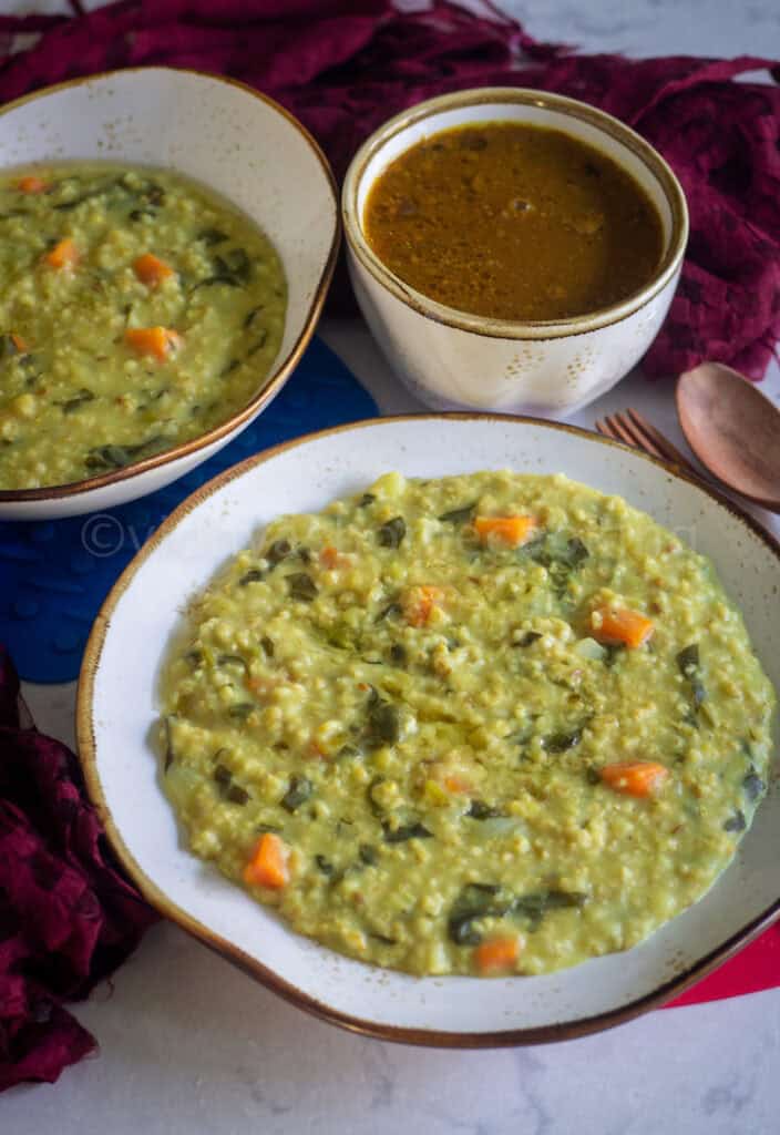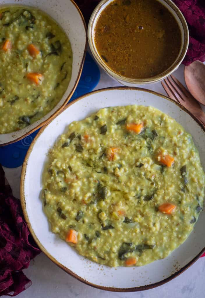 This was so delicious and tasty way better than using RICE. I made in my Indian pressure cooker with uncooked masoor dhal, steel cut oats and vegetables including frozen beans, butternut squash, frozen block spinach. Added a tsp of sambar powder. My husband and I had two bowls each WITHOUT any chutney or pickles. Bursting with flavours and taste. We are vegan so I used vegan margarine instead of ghee on top. Thankyou for this delicious recipe.