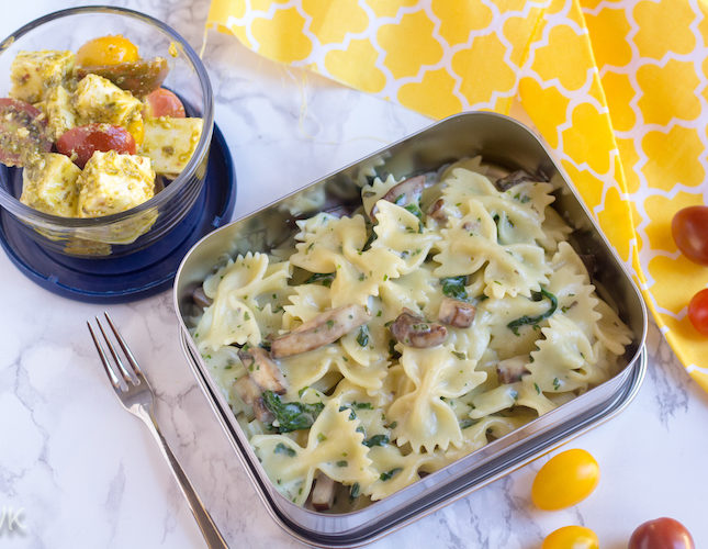 White Cheddar Cheese Pasta with Mushrooms and Spinach