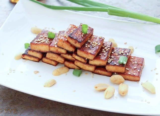 Nectar Glazed Tofu with Roasted Sesame Seeds