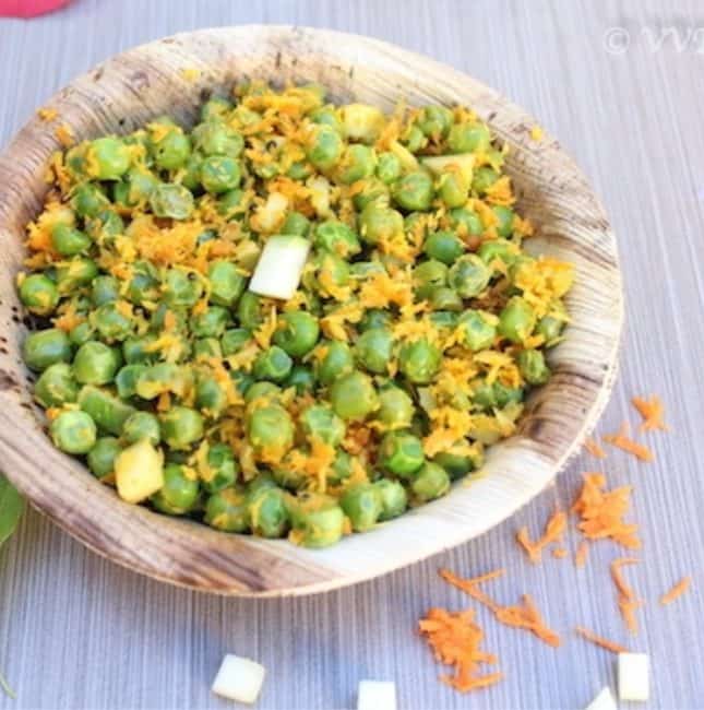 Manga-Thenga Pattani Sundal | Peas Sundal with Raw Mango and Coconut