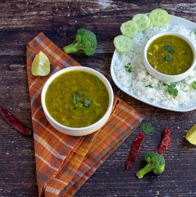 Instant Pot Red Lentils with Broccoli | Masoor Dal Tadka with Broccoli