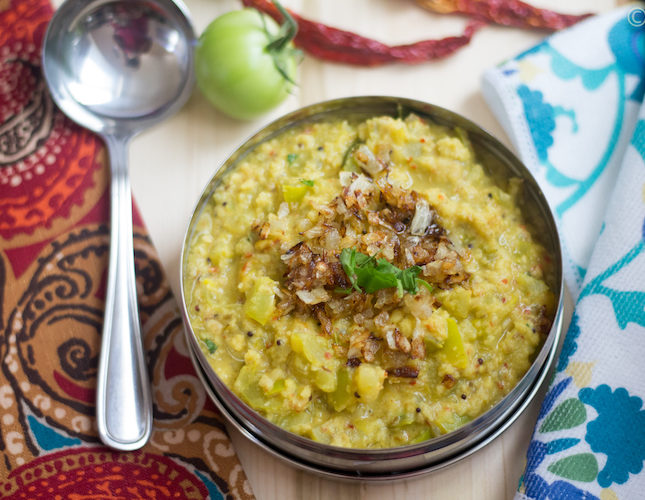 Green Tomato Kootu | Raw Tomato Gravy with Coconut