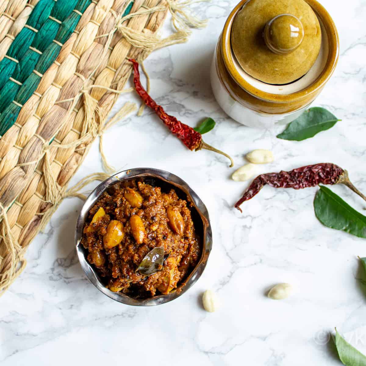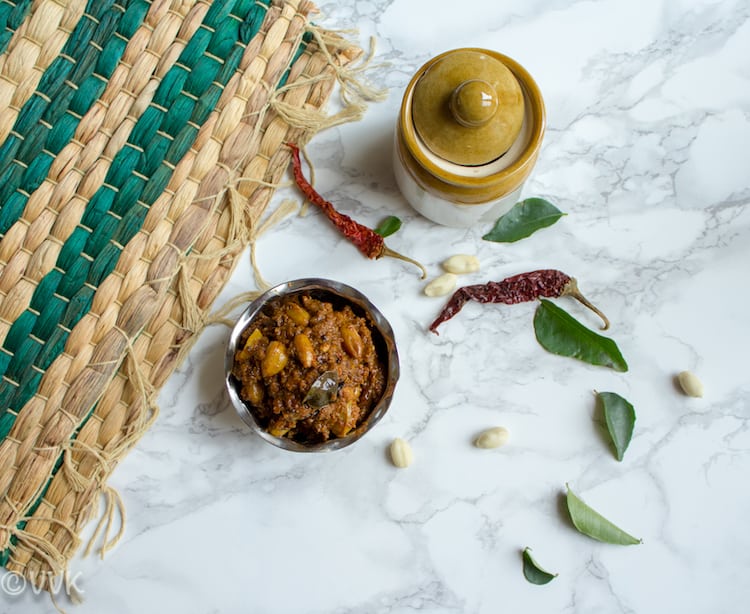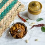 This tamarind rice paste is vegan. You can use gluten-free asafoetida for a gluten-free recipe. Peanuts are part and parcel of pulikachal, but if you are allergic to nuts, you can skip the peanuts, and for texture and crunch, you can add brown chickpeas, cooked.