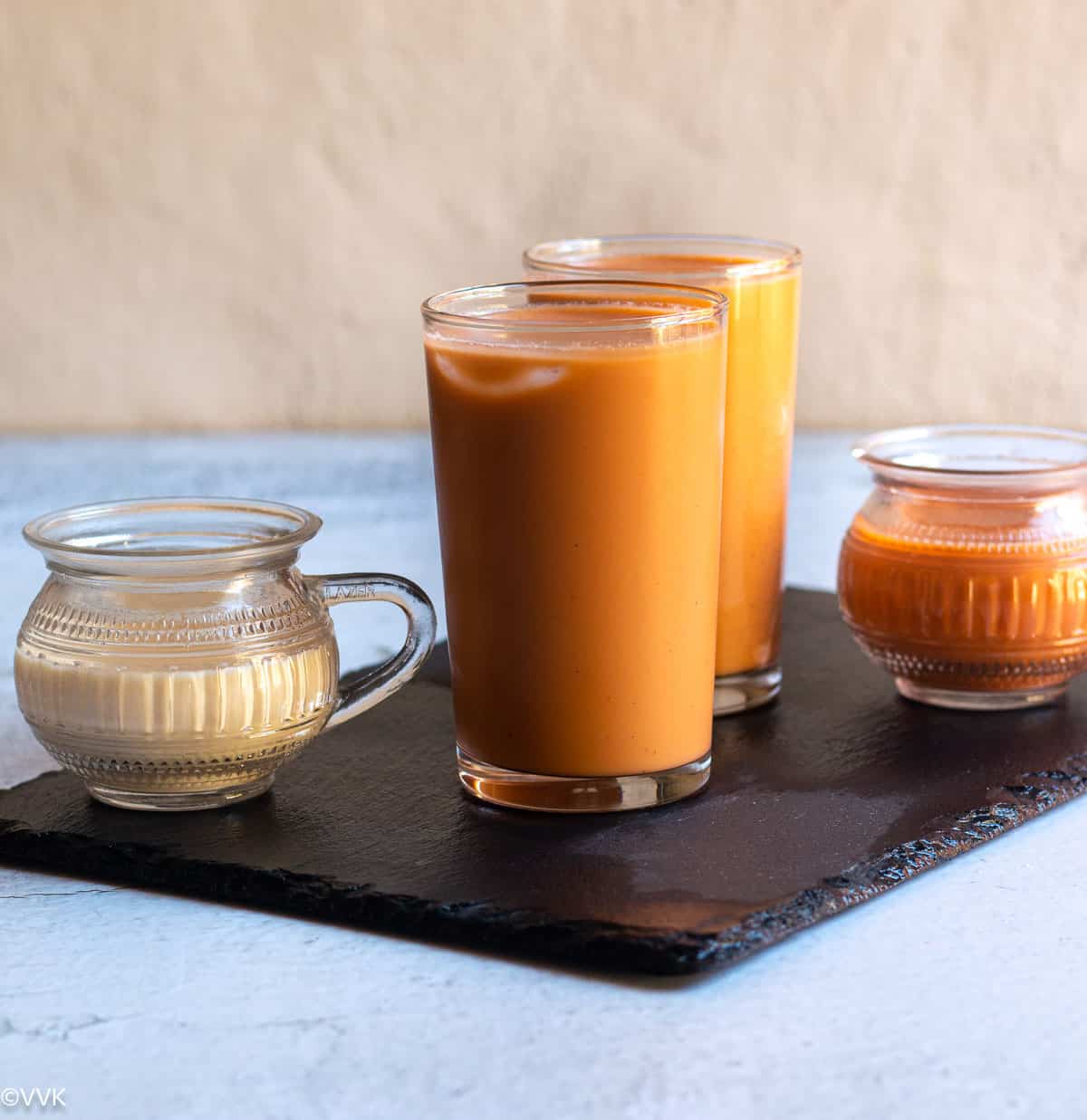 I tried to prepare Thai tea mix from scratch but couldn’t replicate it 100% and then went with the store-bought Thai tea mix, and that made a huge difference.