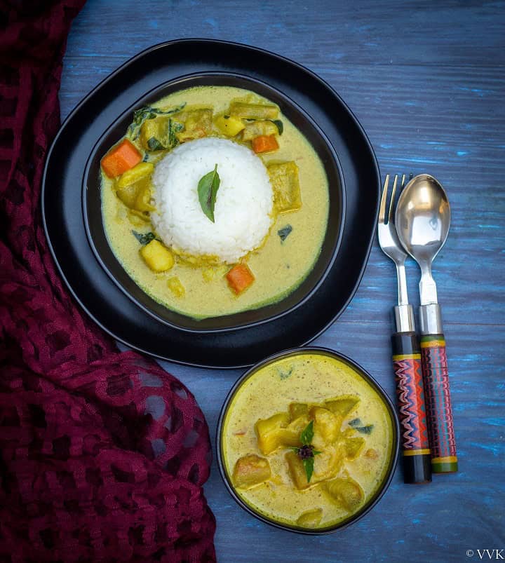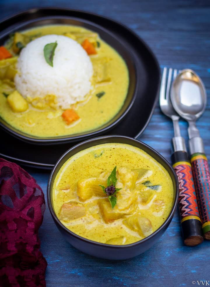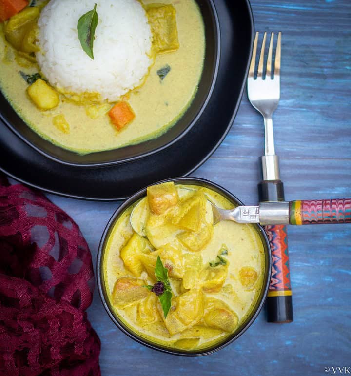 With Instant Pot, you can cook the rice along with the curry. The pot-in-pot method comes in handy, and you can make dinner in no time. Add in some beans or tofu to make it a complete meal. I served it along with Teriyaki tofu, but you can add tofu pieces in this curry also.