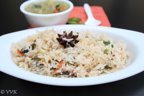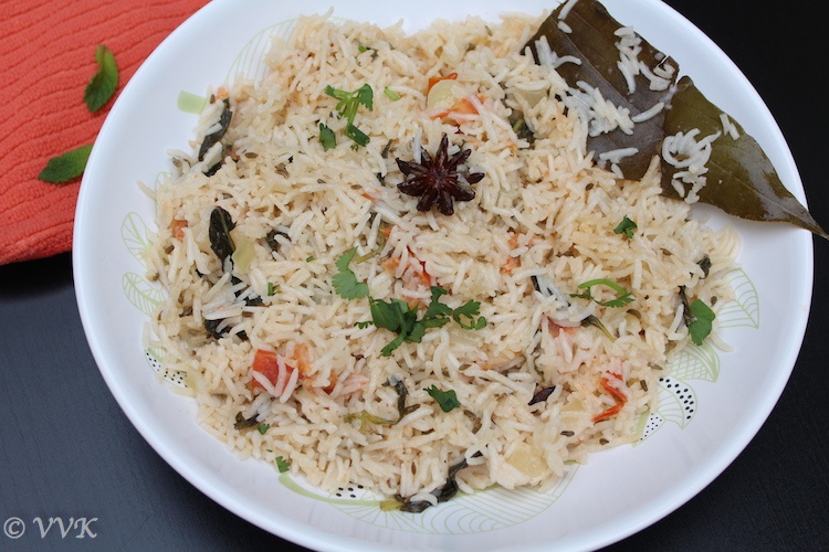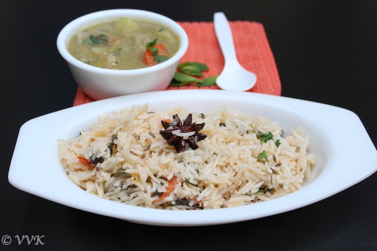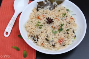 This pulao is a weekend staple in our household, and I even share a platter with this recipe – the coconut milk pulao platter. As this rice is mild, I like to serve it with spicy kurma, and our favorite is the turnip kurma. But you can serve it with salna or mushroom kuzhambu or any other spicy curries.