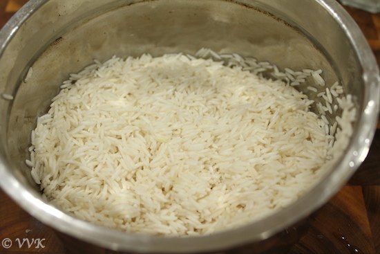 - Wash the rice and soak it in water till you do the preparation work. Then drain the water thoroughly.