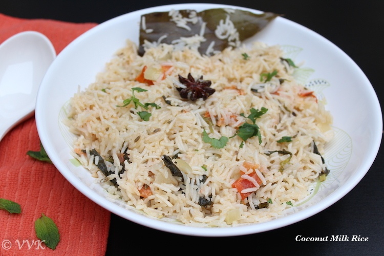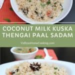 Delicious and easy-to-make thengai paal sadam or the vegetarian coconut milk kuska without any veggies! Learn how to make this mild and flavorful rice with step-wise pictures.