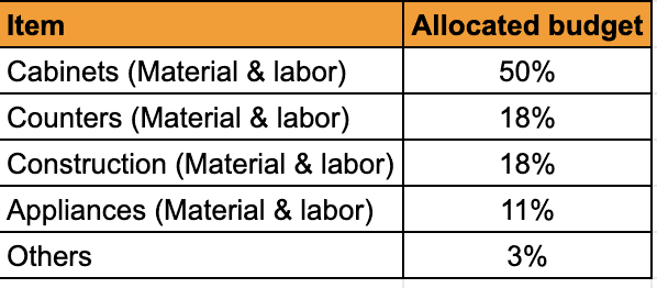 Here is how we allocated our budget. This may be quite different in an individual’s case depending upon the materials and style etc. Again, we will be discussing this in future posts.