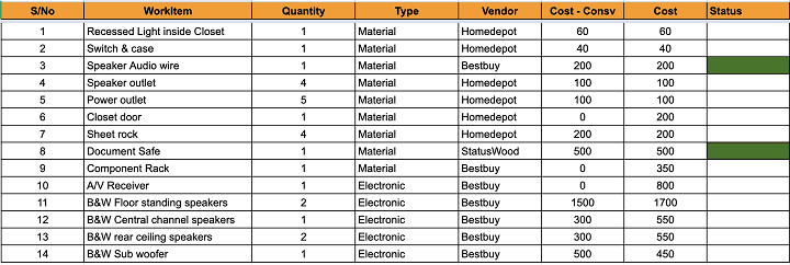 Here’s a sample of how I was tracking the cost of the project.