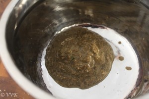 - Drain and grind them into a smooth paste with turmeric powder, tamarind paste, and ¼ cup of water.