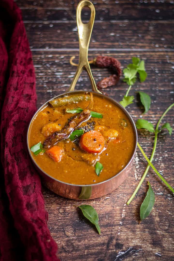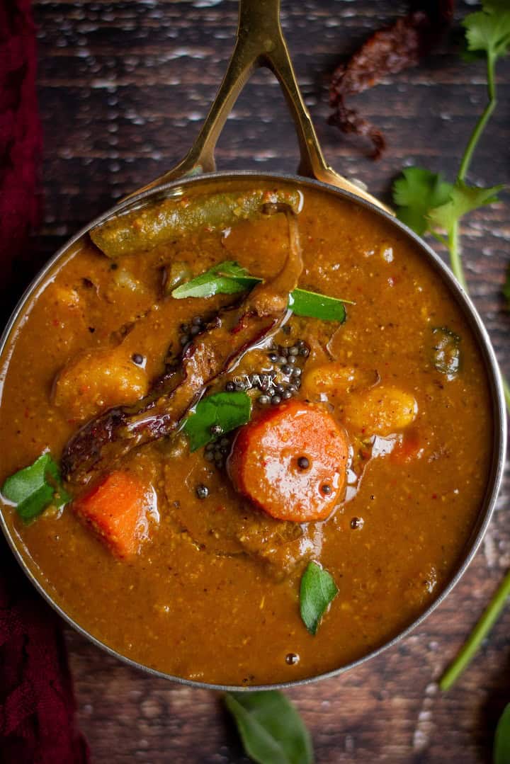 Mixed vegetable curry or stew with freshly ground spices and coconut specially prepared on the auspicious Thiruvathirai day! This curry is popularly known as Thiruvathirai sambar or seven kari kootu or kuzhambu or thalagam.