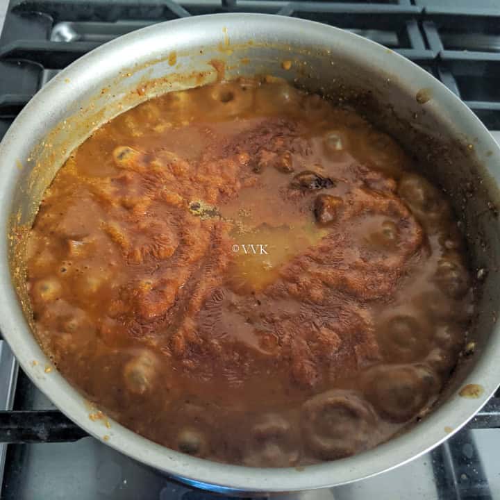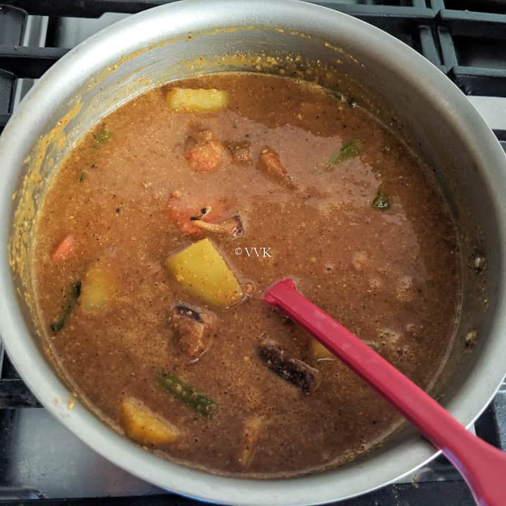 As we add toor dal and freshly ground mix, we always call this as sambar, and it’s a variation of arachuvitta sambar.