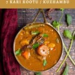 We make a thick stew or curry with seven vegetables. Kari here refers to vegetables. You can call this as sambar, kootu, curry, or thalagam.