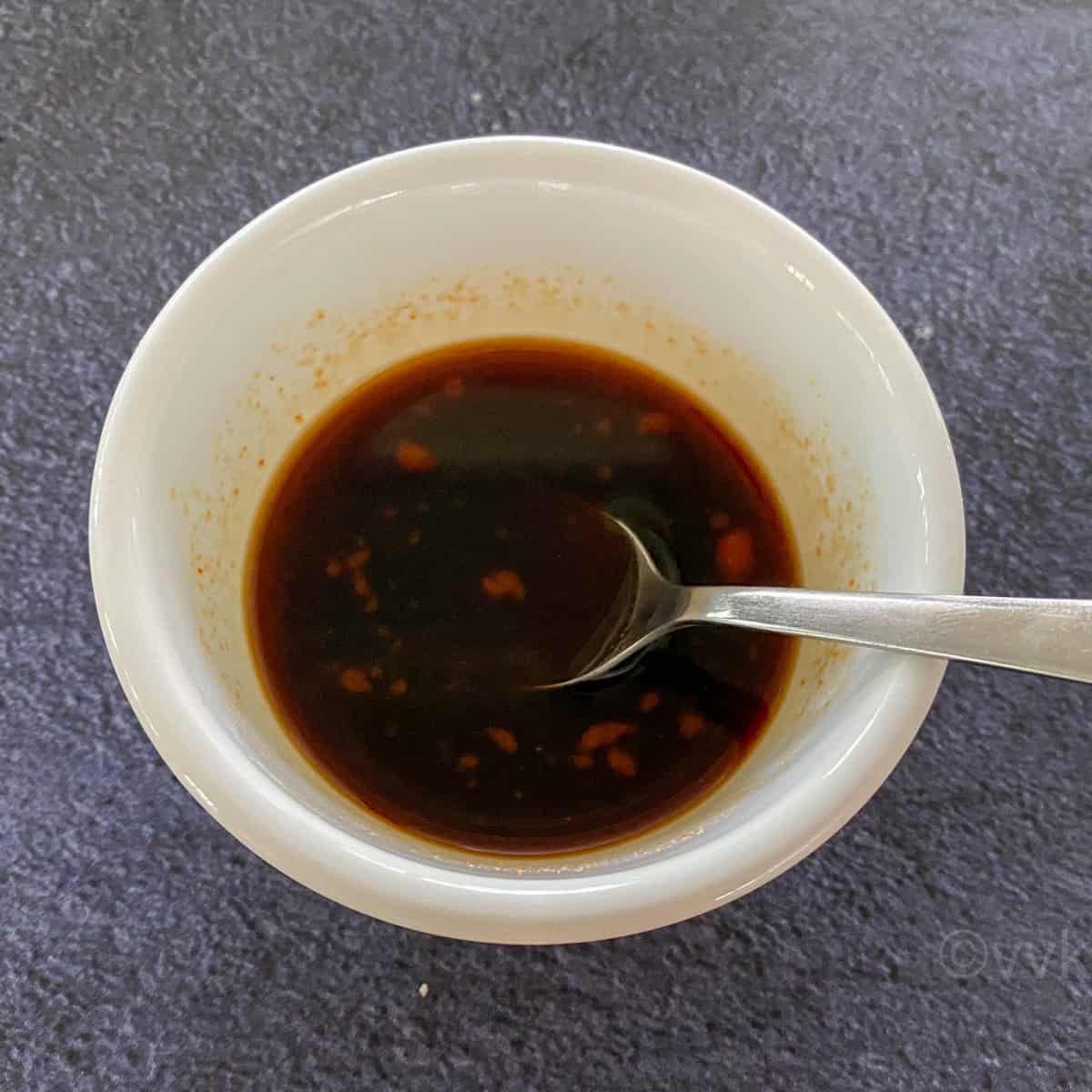 We prepare a simple sauce for flavoring the filling with soy sauce, brown sugar, rice vinegar, sriracha, and salt. Adjust these measures to your taste, and instead of sriracha, you can use green or red chili sauce. Also, I have tried mirin instead of rice vinegar too.