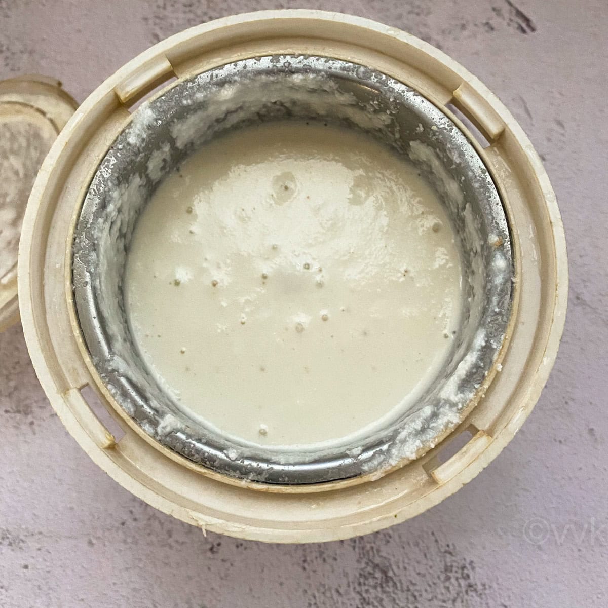 - Now grind the coconut, soaked cashews, and roasted gram by adding ½ cup of water and set it aside.