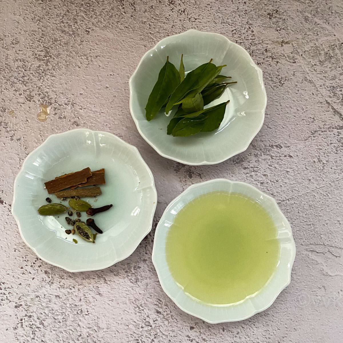 To Temper – We need oil, curry leaves, cloves, crushed cardamom, and cinnamon pieces.