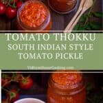 I have tried making this with Roma tomatoes and sour tomato varieties. I personally like sour tomato variety for this thokku.