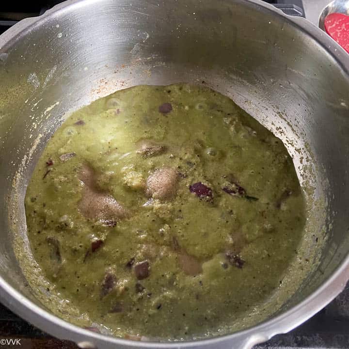 - Grind everything given under “to grind” (Ingredients list in the recipe card below) into smooth paste by adding ½ cup of water.
