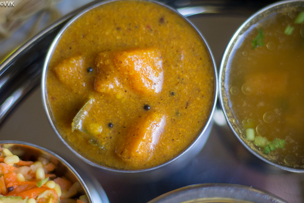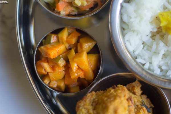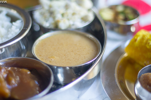 Oh yeah… Mine is a mix of Tamil cuisine as well. As you can see, Mambazha pachadi is not a must. But I made it.