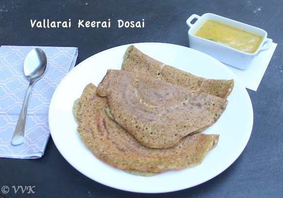 Idli, Dosa, Paratha and Soups are great for sneaking in veggies and greens. Here is one such recipe – Vallarai Keerai dosai.