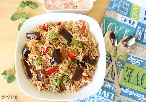 I love your addition of bell peppers, Sri :) I have never added them to vangi bath. I have my recipe coming up soon – not authentic but the way amma makes it :)