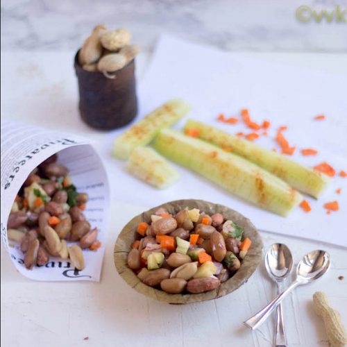 For this salad, I used only 2 cups of cooked chickpeas. The remaining portion can be used for pitlai, kuzhambu, sundal, or pani puri.