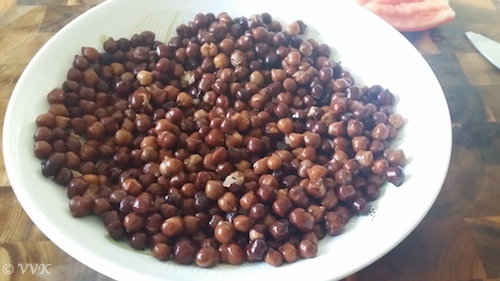 - Instead of kala chana, any other legumes of your choice can be used. I have tried a similar one with peanuts (Peanut sundal) and also with green moong beans.