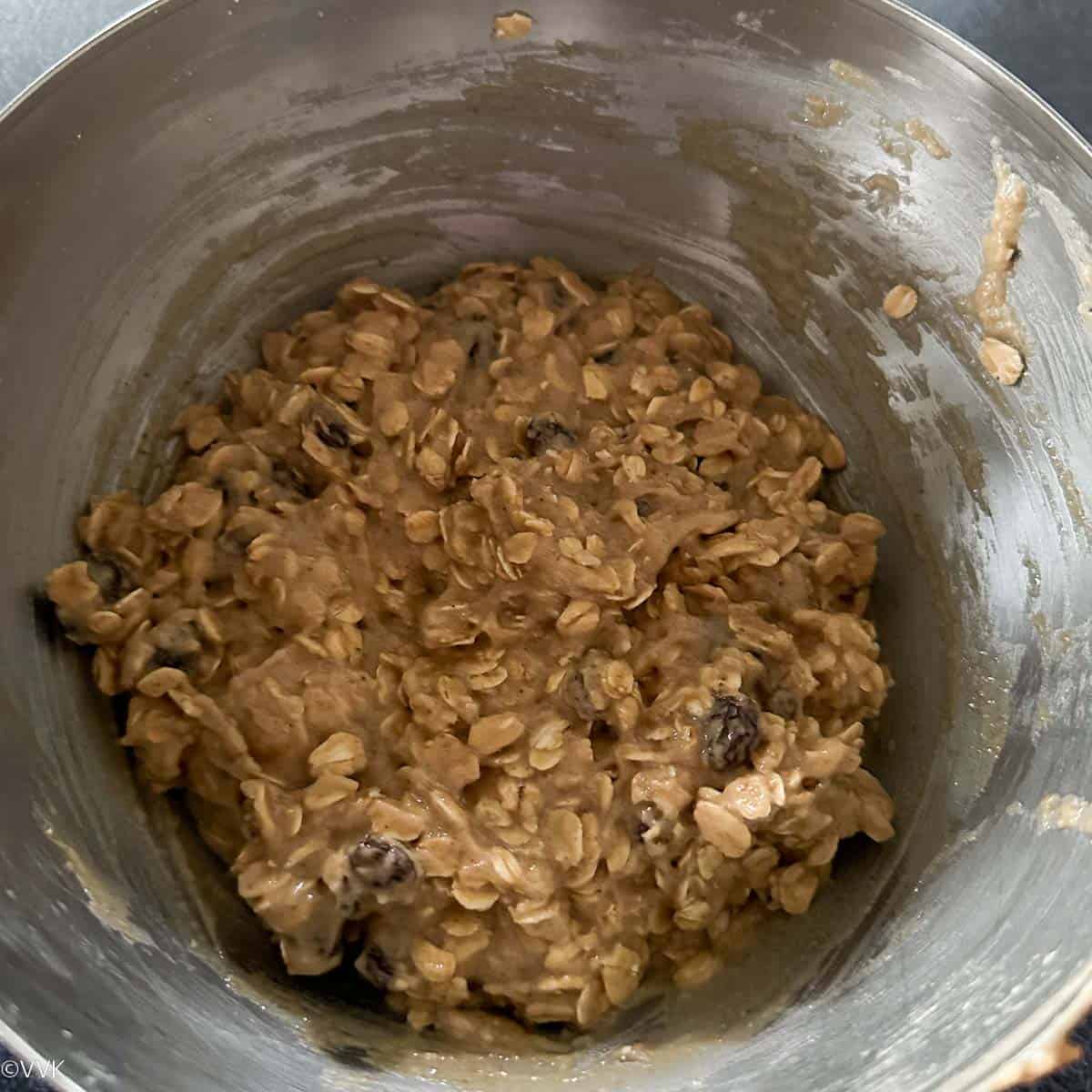 - Gently mix, and the eggless oatmeal cookie dough is ready.
