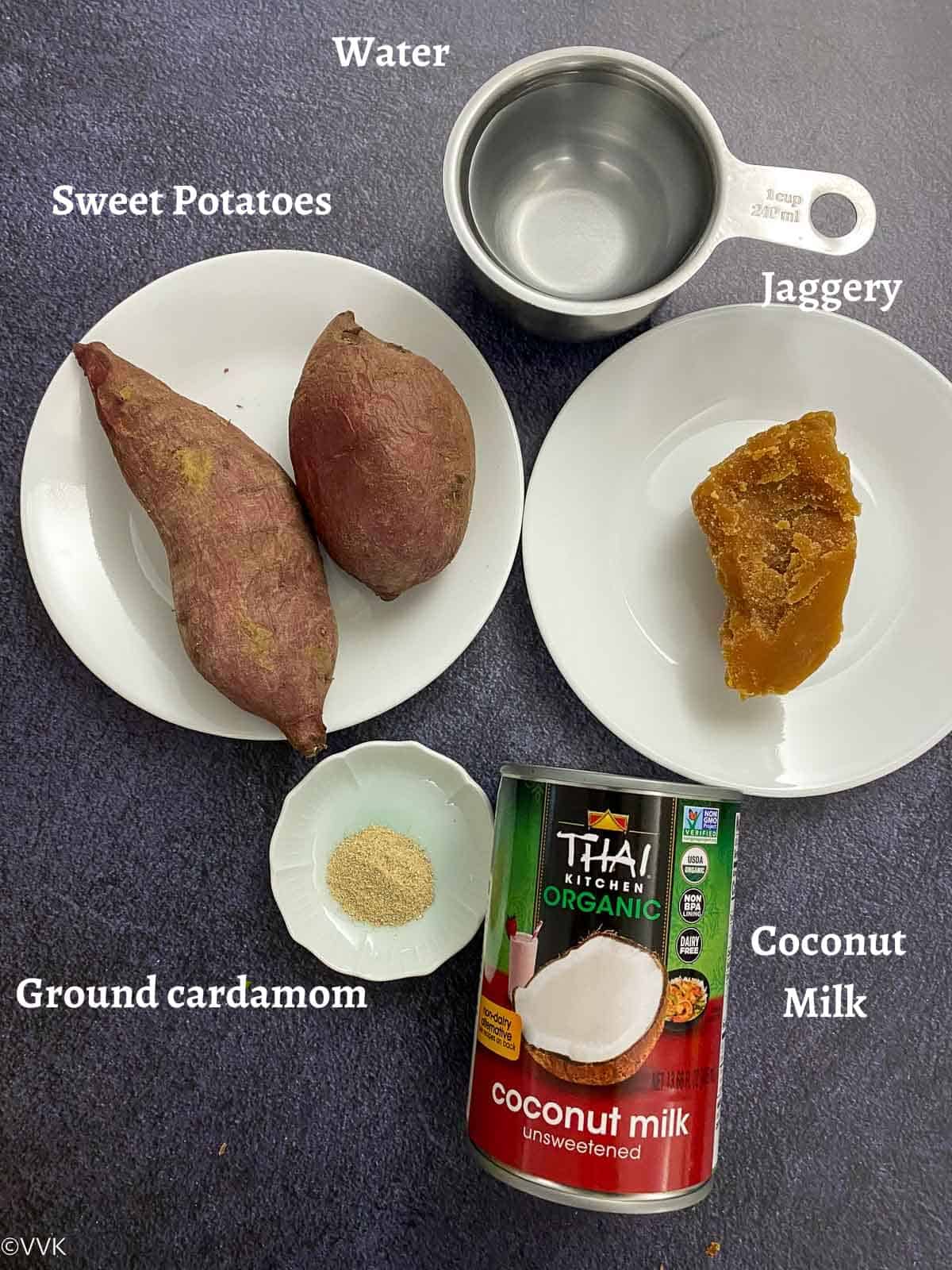 Using the orange flesh variety: I have yet to test this recipe with the orange-flesh sweet potatoes. But you can very well use them. Adjust the measure of jaggery depending on the sweetness of the sweet potatoes.