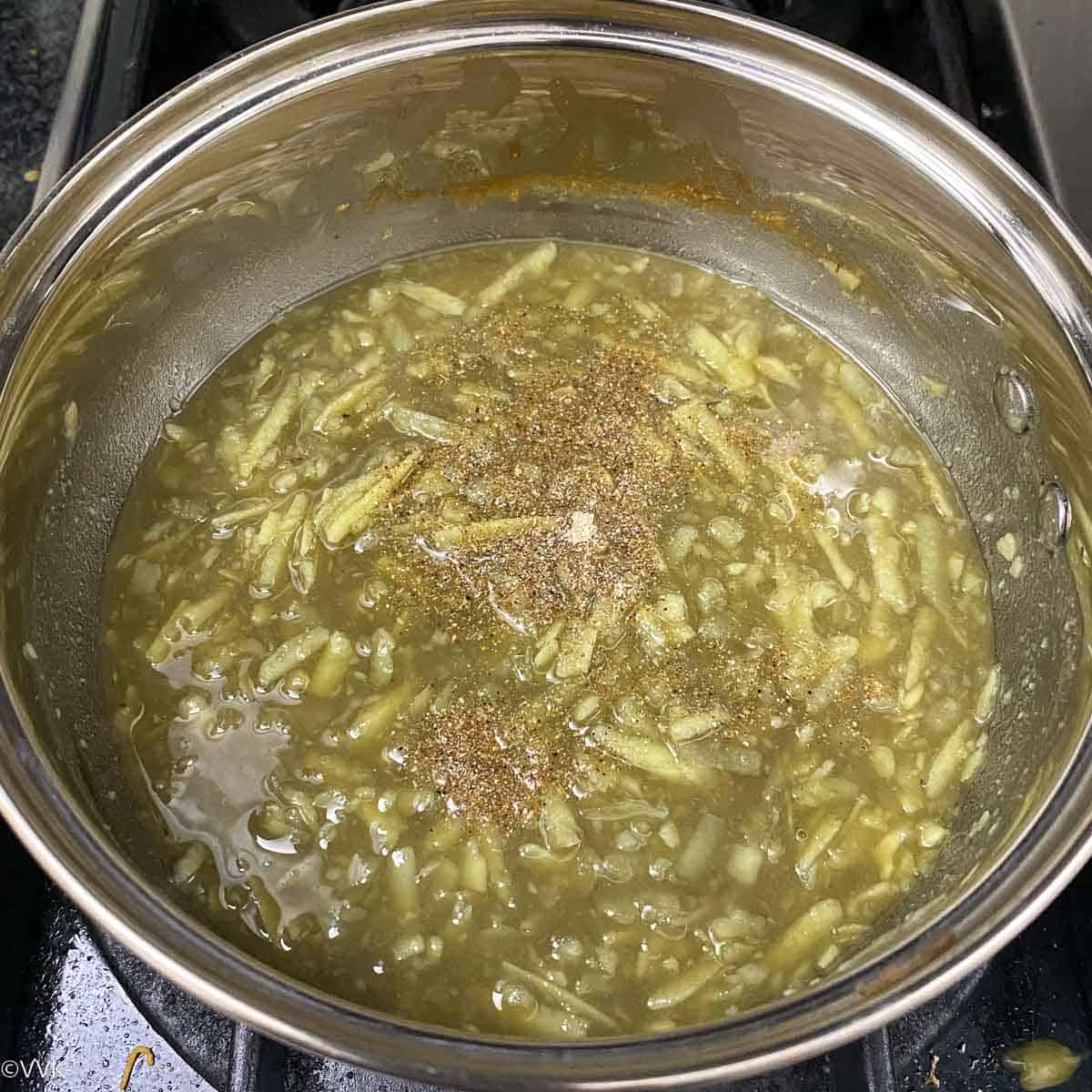 - When the jaggery dissolves, the kheer will look runny, and that’s perfectly fine. Add the ground cardamom and cook for a couple more minutes.
