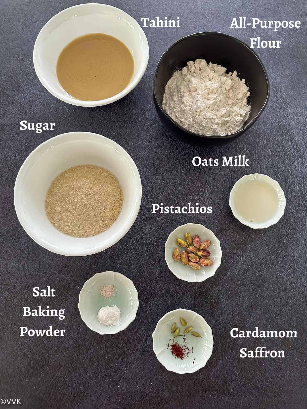 Flavorful vegan tahini cookies with the amazing flavors of cardamom and saffron! These are perfect tea-time cookies! Learn how to make these tahini cookies with detailed step-wise pictures.