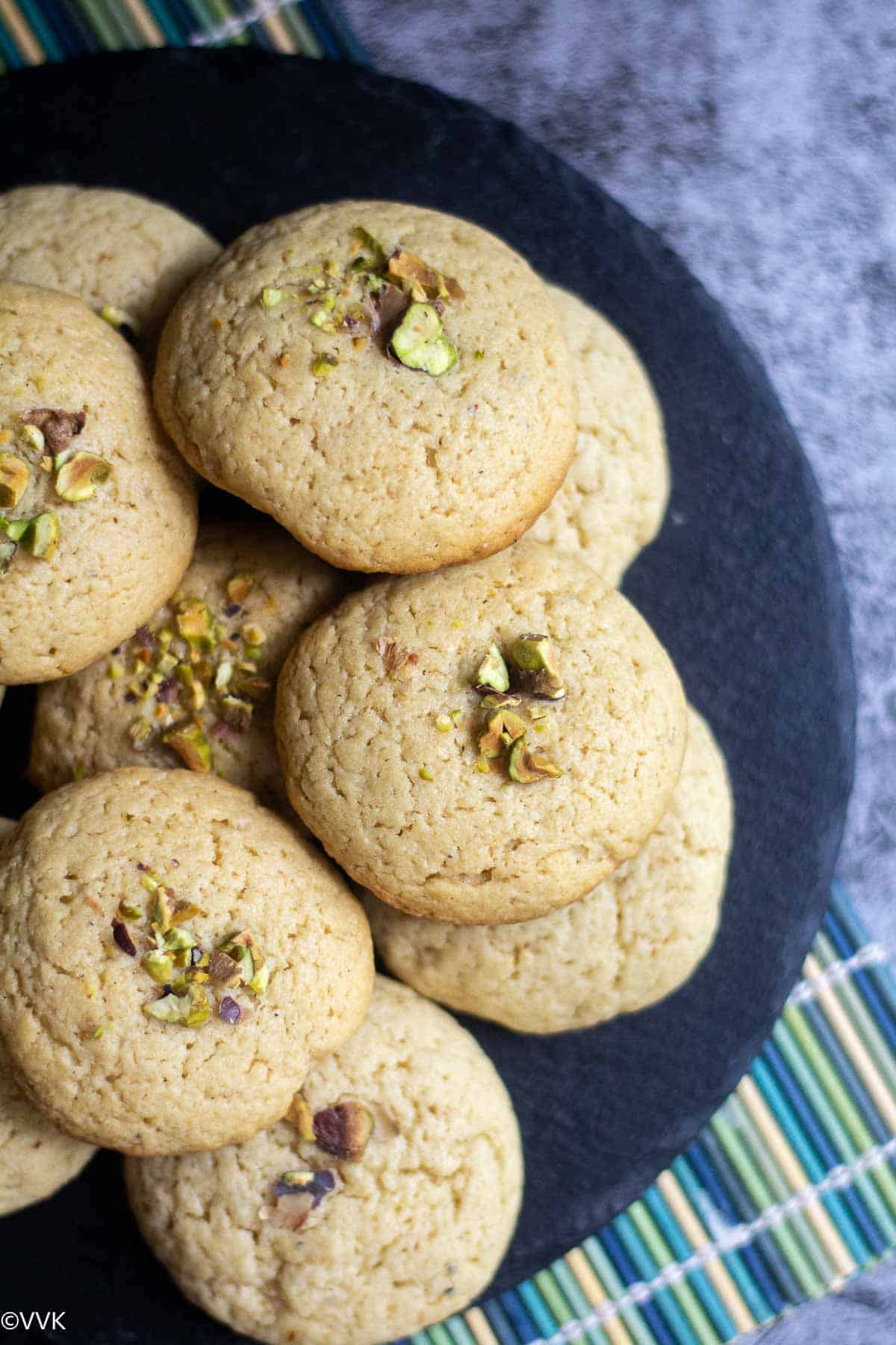 Flavors – I used cardamom and saffron to flavor the cookies. But you can use vanilla essence, rose essence, or other flavorings of your choice.