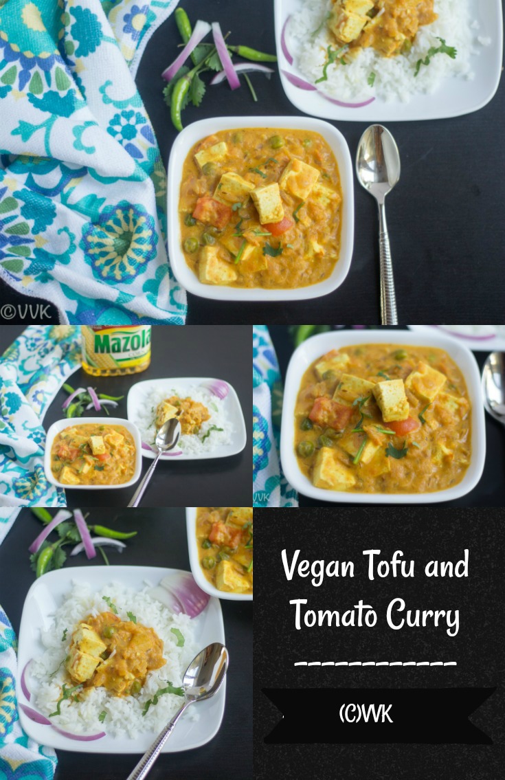 I always look for easy and healthy recipes especially during weekdays, and at the same time, I prefer recipes that go well with both rice and roti or any Indian bread. This Tofu and Tomato curry is one such recipe. But guess what, this is a perfect party/potluck recipe too. The rich and creamy vegan version of this curry will surely be a crowd pleaser.