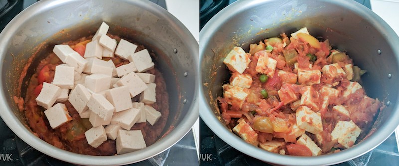- If you prefer crispier tofu, then you can pan roast the tofu cubes separately and add it to the curry as well.