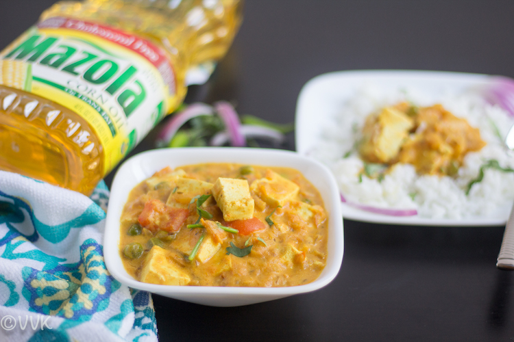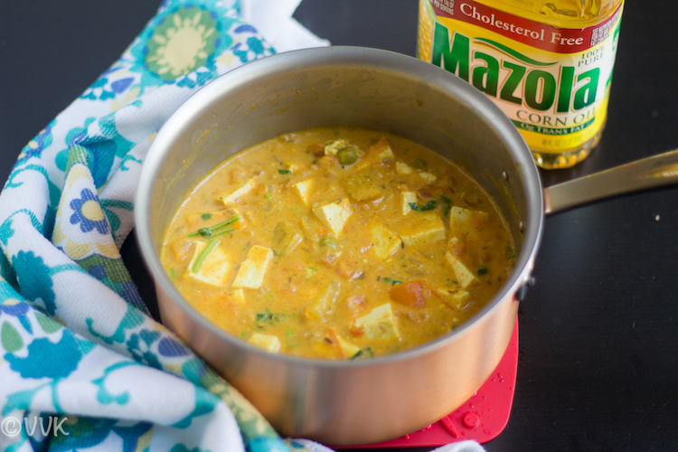 Wondering how rich and creamy can be light? I went with plant-based protein Tofu and also with light coconut milk and Mazola® Corn Oil. These elements make the curry vegan and better for your health. A clinical study showed Mazola Corn Oil reduces cholesterol 2x more than extra virgin olive oil. To learn more about this claim, see Mazola.com. Check out the detailed Tofu and Tomato Curry recipe with stepwise pictures.