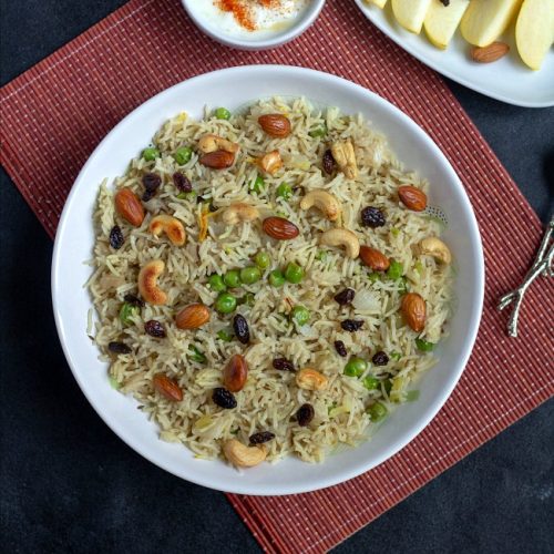I love mixed vegetable pulao, so does my family. It’s one of my go-to recipes for our everyday meals, weekends, and potlucks also. I have a simple no-onion no-garlic pulao recipe on my blog and a few other ones. I will link them down below.