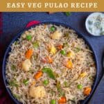 Make this delicious mixed vegetable pulao/pulav in Instant Pot with homemade pulao masala! Be it for a quick meal or potluck or weekend brunch; this veg pulao will surely be a crowd-pleaser.