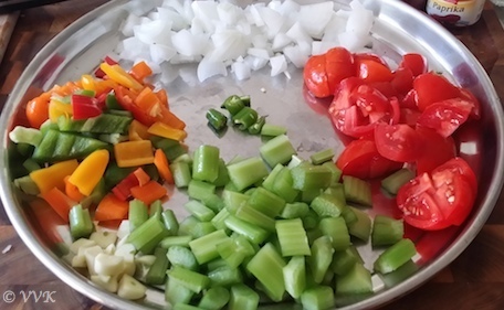 - Chopped Colored Bell Peppers – 1 cup ( I used green, red, yellow and orange)