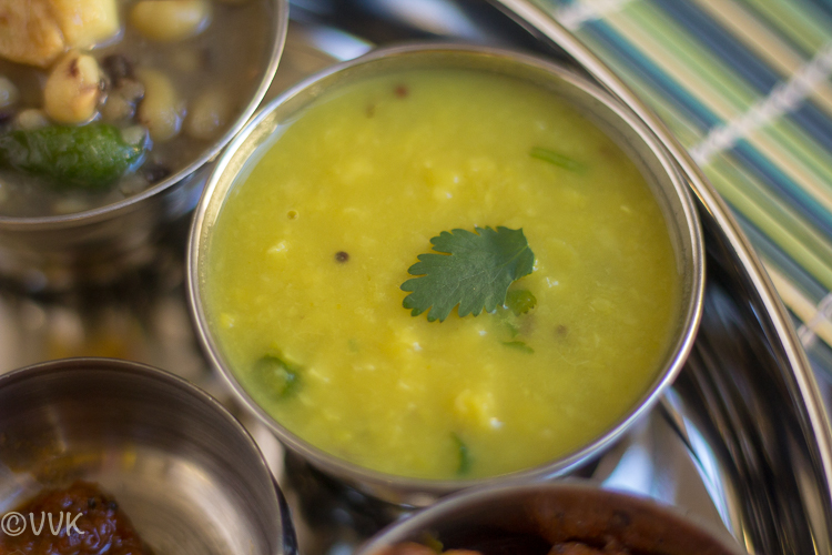 A Vegan Konkani style dal recipe prepared with split pigeon pea/toor dal with the hint of ginger. You can get the recipe here.